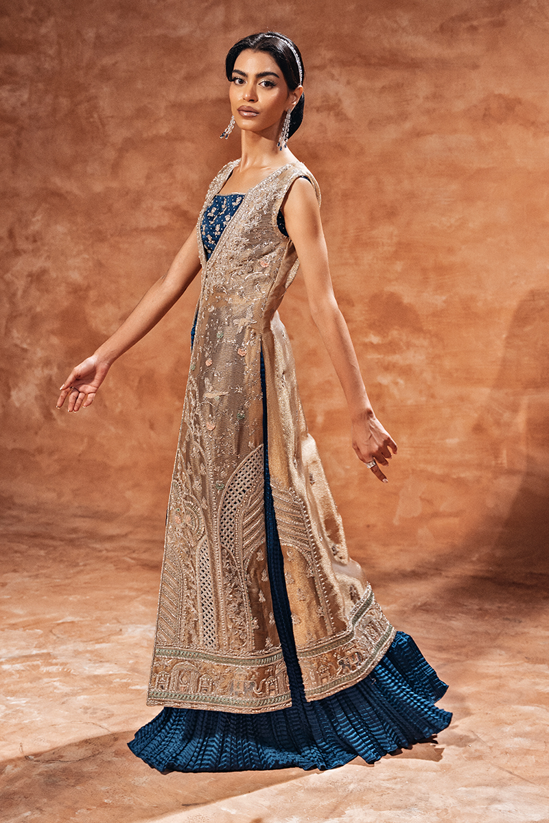 Fabric: Jacket: Zari Tissue Blouse: Silk, Pants: Silk Crushed