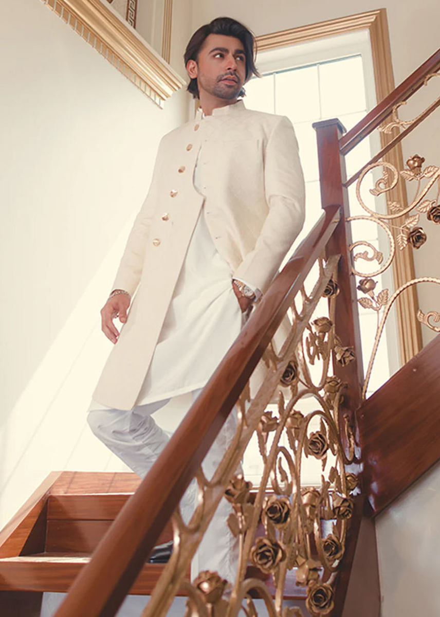 Exquisite Timeless Ivory Sherwani stitched to perfection.