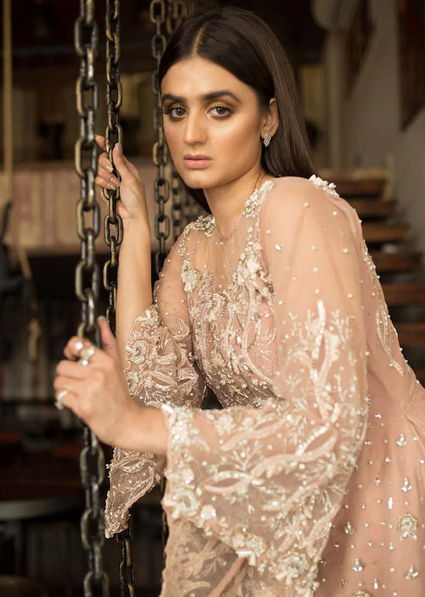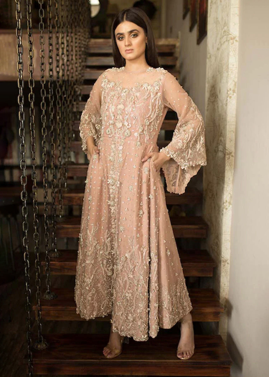 Fully embellished Intricate full-length peach gown with a raw silk trouser.